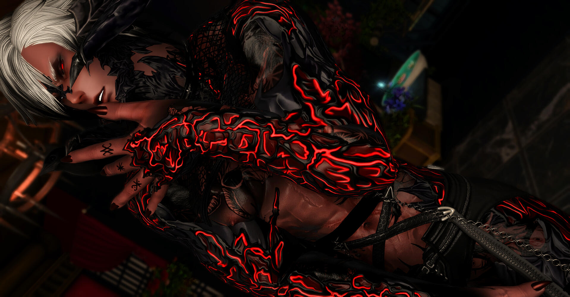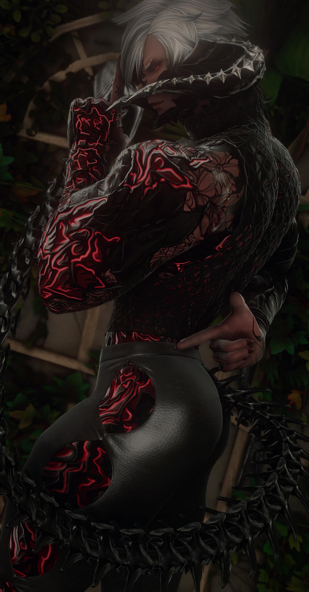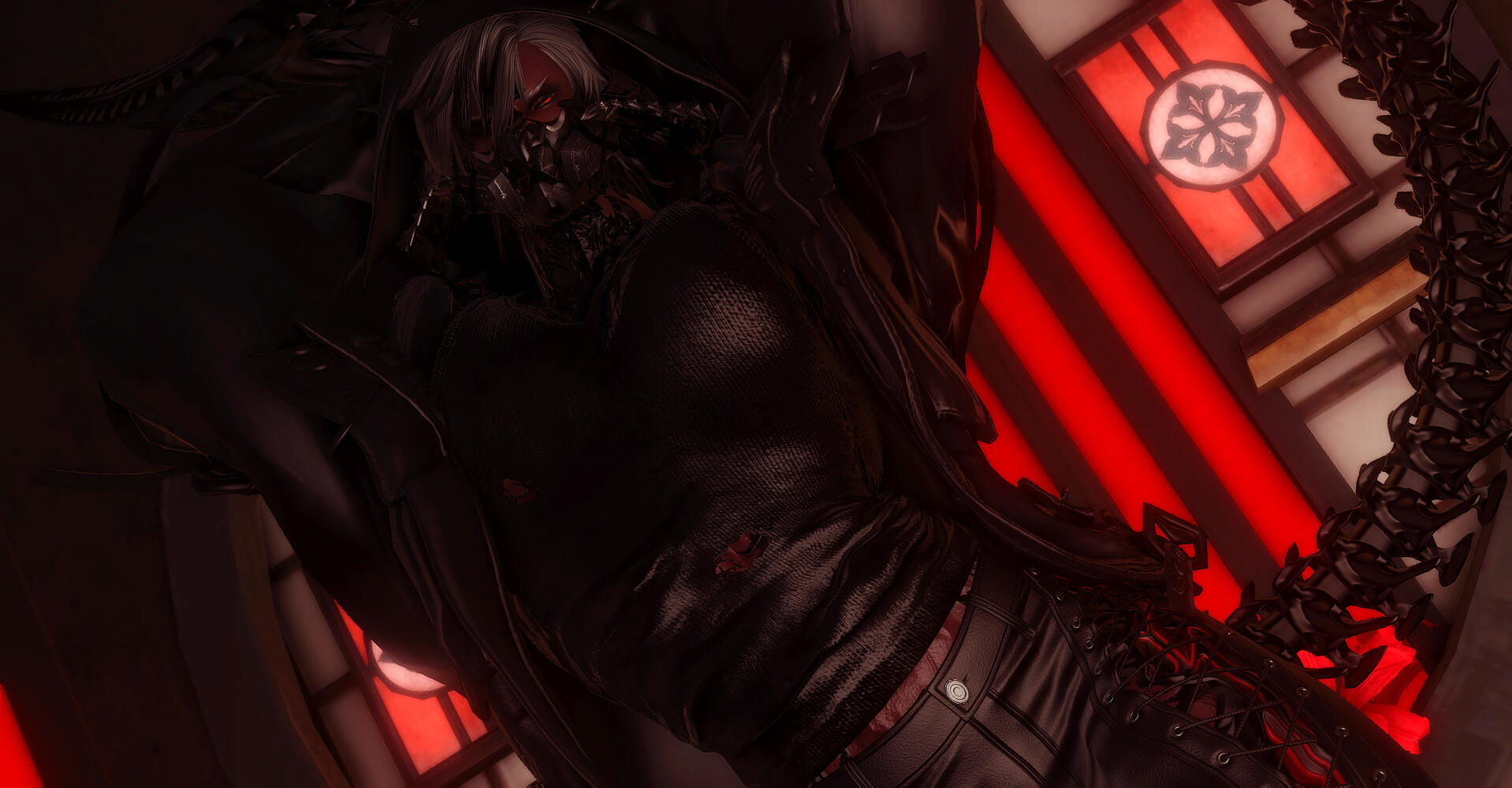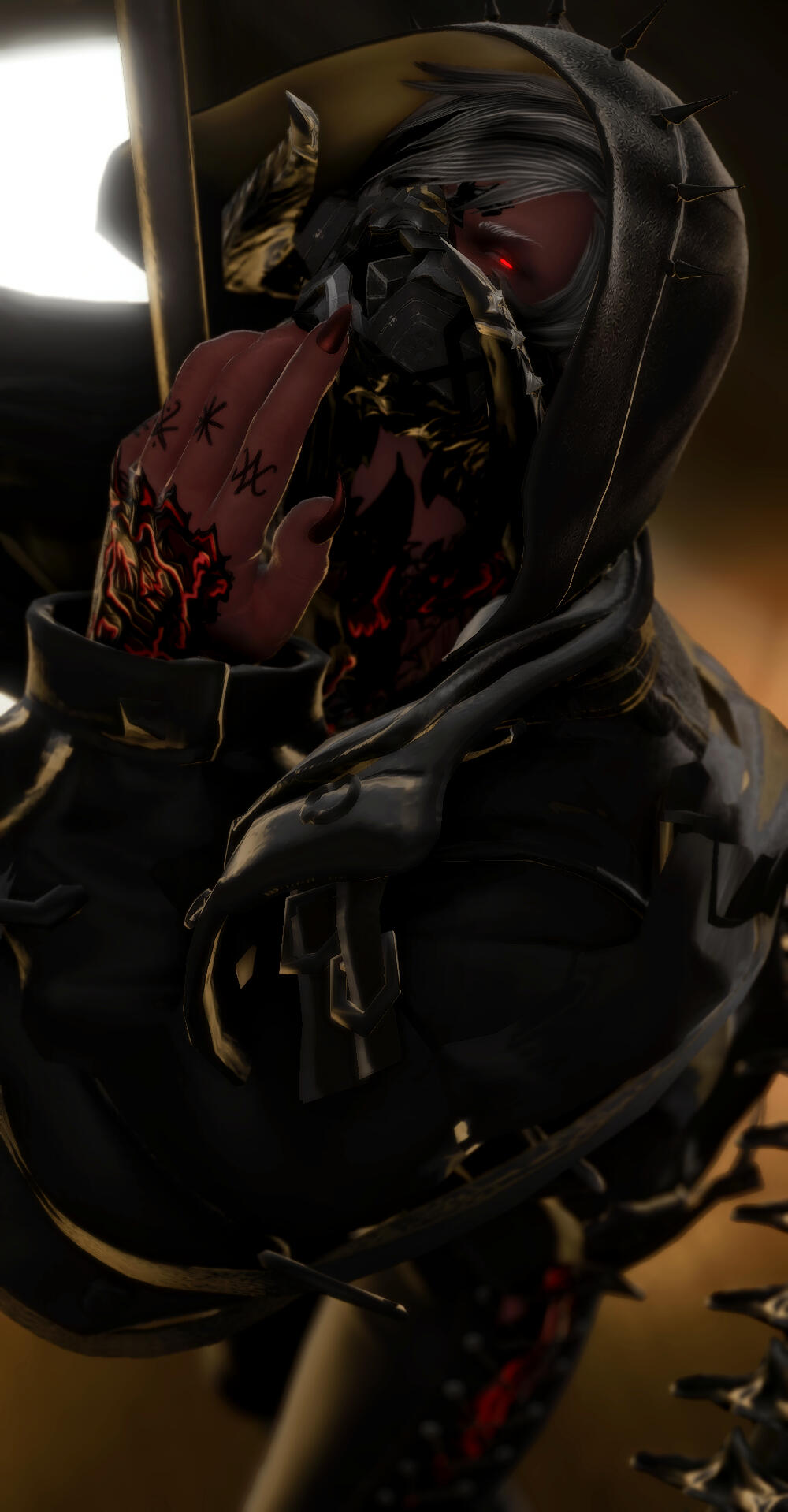 Having outlasted many lifelines longer than the common Au Ra, it's likely that he was created through unnatural means. Although his laboratory records do not reveal his true origins- aside a name, it is speculated that he is likely the result of a Voidsent pact.As a child, he was seized from the ruins of Tam-Tara Deepcroft when a number of researchers and adventurers went missing after entering its grounds, prompting high level mages to investigate. Among the corpses of both people and monsters, a child with dark Aether resided in the corner; anyone who approached would be snuffed out of their life energy. Magic was used to suppress his abilities so he could be brought back to the Underground Research Facility for further study.They were able to learn of his unique Aether through their research, though they were never able to discover its origins. The darkness inside him acted as a poison to those close. In addition, a small amount resided within his right eye, destroying the cells and resulting in blindness. Extreme amounts of natural aether weaken him, so his own destroying it acted as a natural defence response.Despite the torture his body endured, Kijin did not seem bothered by the painful research. In fact, he was so intrigued by it all be began experimenting on himself. He began demanding more intense and painful treatments. When the researchers refused, he became frustrated and began killing those who did not abide by his decisions. Those who feared for their lives agreed to carry out his requests, which eventually led to Kijin gaining control of the Laboratory.With a wave of new subjects to experiment on at his disposal, he tirelessly went through all the research files, introducing intense and fearsome new procedures. After becoming intrigued by the psychological distress that his new employees experienced when carrying out his orders, he devised even harsher forms of testing to see how far he could push them before they turned to extreme measures, or even became completely numb after experiencing overwhelming trauma. Increasingly obsessed with experimentation, he opened smaller facilities throughout Eorzea, dipping into the black market to expand his connections and resources. As a result, he has been able to acquire jobs in order to expand his research specimens and employees, if he ever grow tired of them, he will sell them back to the Black Market, or dispose of them himself.In the years that have passed, he has gained extensive knowledge on controlling his abilities, actively pursuing individuals with high levels of Aether with the hope of feeling his body break down the closer he gets to them; no levels have been high enough to counteract his poison effectively enough, but he loves exploring the prospect of finding one powerful enough that could potentially kill him.In his attempts to absorb natural Aether, he has implemented numerous methods, including overexposure, sexual intercourse, and consumption, but thus far nothing has worked, instead- developing an insatiable appetite for flesh, to the point of sharpening his teeth to easily consume and digest tougher skin.