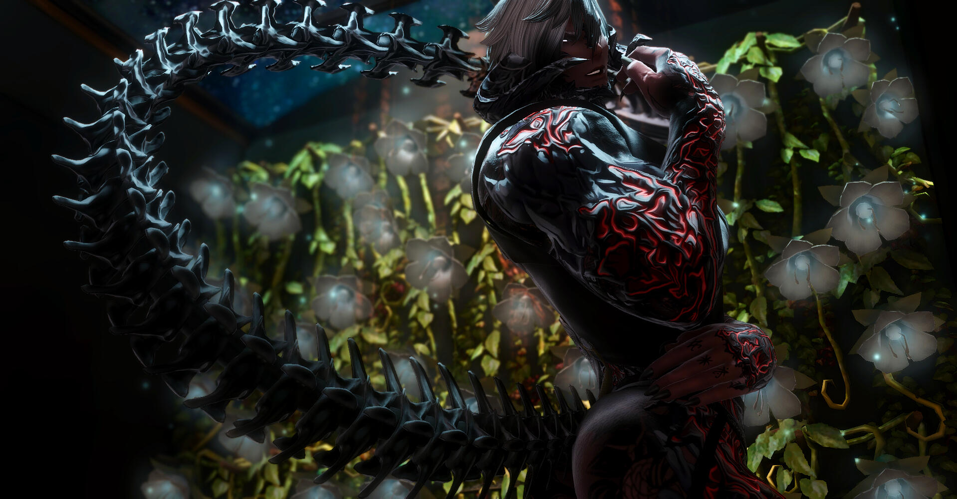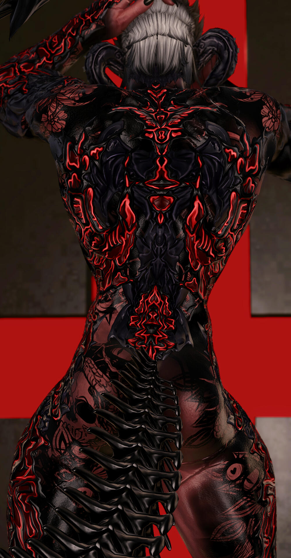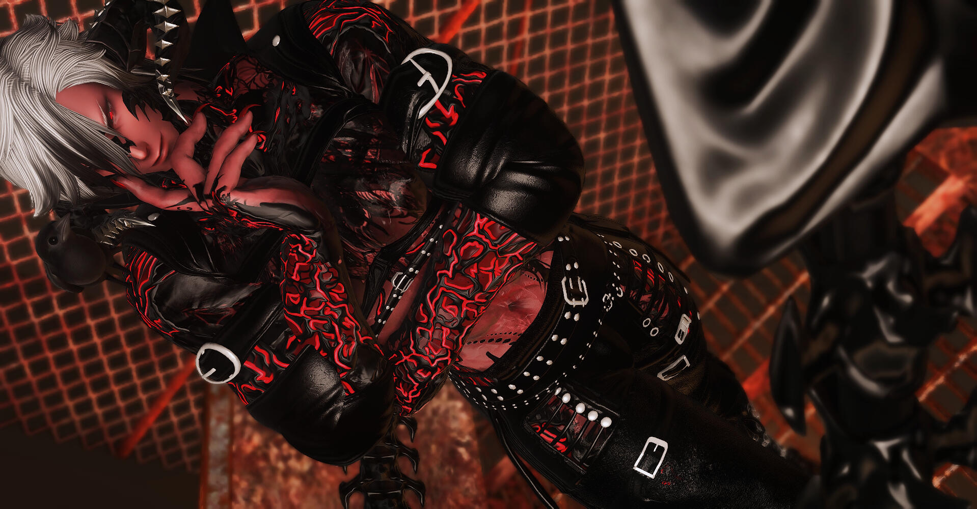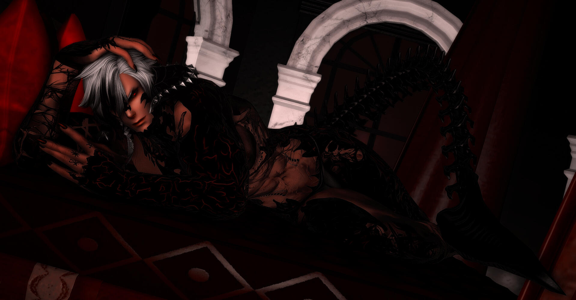 Having outlasted many lifelines longer than the common Au Ra, it's likely that he was created through unnatural means. Although his laboratory records do not reveal his true origins- aside a name, it is speculated that he is likely the result of a Voidsent pact.As a child, he was seized from the ruins of Tam-Tara Deepcroft when a number of researchers and adventurers went missing after entering its grounds, prompting high level mages to investigate. Among the corpses of both people and monsters, a child with dark Aether resided in the corner; anyone who approached would be snuffed out of their life energy. Magic was used to suppress his abilities so he could be brought back to the Underground Research Facility for further study.They were able to learn of his unique Aether through their research, though they were never able to discover its origins. The darkness inside him acted as a poison to those close. In addition, a small amount resided within his right eye, destroying the cells and resulting in blindness. Extreme amounts of natural aether weaken him, so his own destroying it acted as a natural defence response.Despite the torture his body endured, Kijin did not seem bothered by the painful research. In fact, he was so intrigued by it all be began experimenting on himself. He began demanding more intense and painful treatments. When the researchers refused, he became frustrated and began killing those who did not abide by his decisions. Those who feared for their lives agreed to carry out his requests, which eventually led to Kijin gaining control of the Laboratory.With a wave of new subjects to experiment on at his disposal, he tirelessly went through all the research files, introducing intense and fearsome new procedures. After becoming intrigued by the psychological distress that his new employees experienced when carrying out his orders, he devised even harsher forms of testing to see how far he could push them before they turned to extreme measures, or even became completely numb after experiencing overwhelming trauma. Increasingly obsessed with experimentation, he opened smaller facilities throughout Eorzea, dipping into the black market to expand his connections and resources. As a result, he has been able to acquire jobs in order to expand his research specimens and employees, if he ever grow tired of them, he will sell them back to the Black Market, or dispose of them himself.In the years that have passed, he has gained extensive knowledge on controlling his abilities, actively pursuing individuals with high levels of Aether with the hope of feeling his body break down the closer he gets to them; no levels have been high enough to counteract his poison effectively enough, but he loves exploring the prospect of finding one powerful enough that could potentially kill him.In his attempts to absorb natural Aether, he has implemented numerous methods, including overexposure, sexual intercourse, and consumption, but thus far nothing has worked, instead- developing an insatiable appetite for flesh, to the point of sharpening his teeth to easily consume and digest tougher skin.
